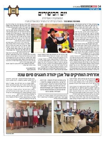 שההרגשה המופלאה הזאת תלווה אותנו כל השנה .חתימה הכיפורים נופלות המ ֵסכות ונחשפת הנקודה היהודית הפנימית .רואים את המעשים ושומעים את הדיבורים ,ועל-פי זה קובעים