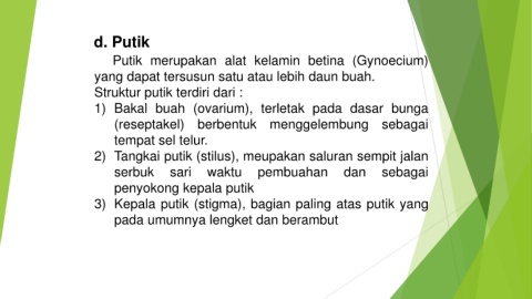 3) Kepala putik (stigma), bagian paling atas putik yang