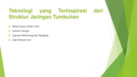 Teknologi yang Terinspirasi dari Struktur Jaringan Tumbuhan Panel Surya (Solar Cell) Sensor Cahaya Lapisan Pelindung dan Pengilap Alat Pemurni Air