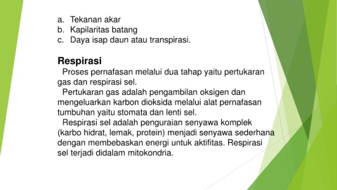 dengan membebaskan energi untuk aktifitas. Respirasi