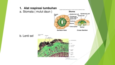 1. Alat respirasi tumbuhan a. Stomata ( mulut daun ) b. Lenti sel