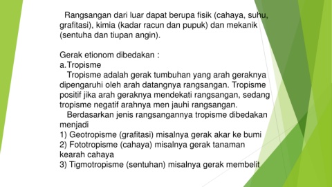 dipengaruhi oleh arah datangnya rangsangan. Tropisme