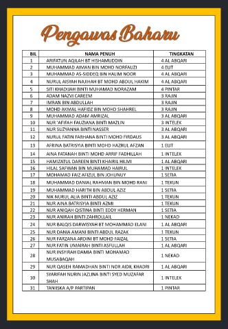 BIL NAMA PENUH TINGKATAN