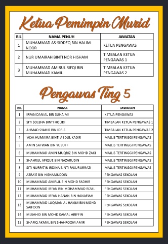 1 IRFAN DANIAL BIN SUHAIMI KETUA PENGAWAS