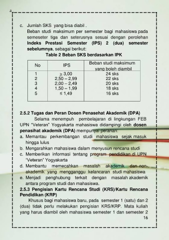 c. Jumlah SKS yang bisa diabil .