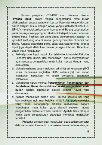 a. Jadwal proses Input mata kuliah telah ditentukan oleh Fakultas