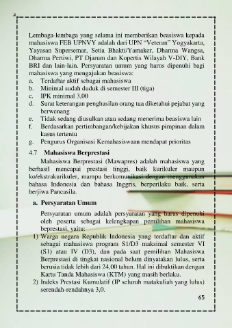 oleh peserta sebagai kelengkapan pemilihan mahasiswa
