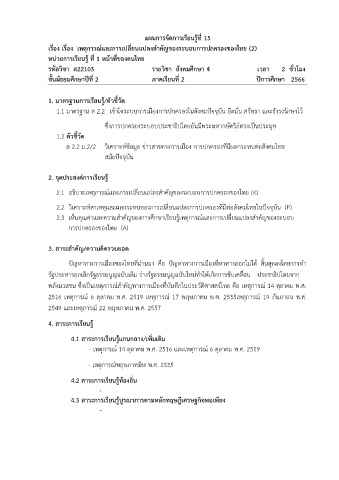 2.3 เห็นคุณคำและควำมส ำคัญของกำรศึกษำเรียนรู้เหตุกำรณ์และกำรเปลี่ยนแปลงส ำคัญของระบอบ