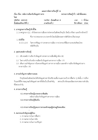 2.3 เห็นควำมส ำคัญของกำรวิเครำะห์ข้อมูลข่ำวสำรทำงกำรเมือง และหลักกำรเลือกรับข้อมูลข่ำวสำร