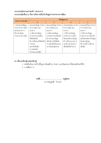 แบบประเมินชิ้นงาน เรื่อง หลักการเลือกรับข้อมูลข่าวสารทางการเมือง