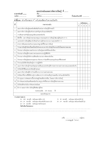 รายวิชา ..................... รหัสวิชา............................................................. ชั้นมัธยมศึกษาปีที่ ...................