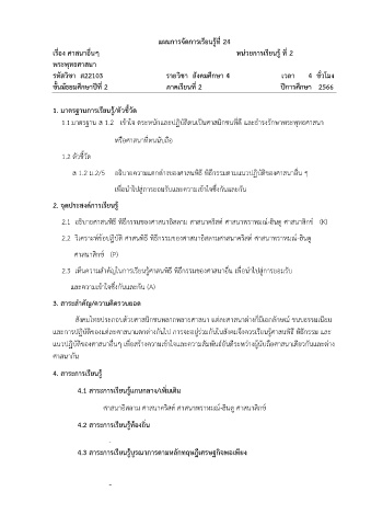 2.3 เห็นควำมส ำคัญในกำรเรียนรู้ศำสนพิธี พิธีกรรมของศำสนำอื่น เพื่อน ำไปสู่กำรยอมรับ