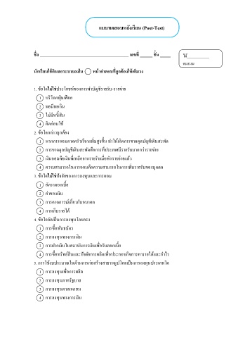 แบบทดสอบหลังเรยน (Post-Test)