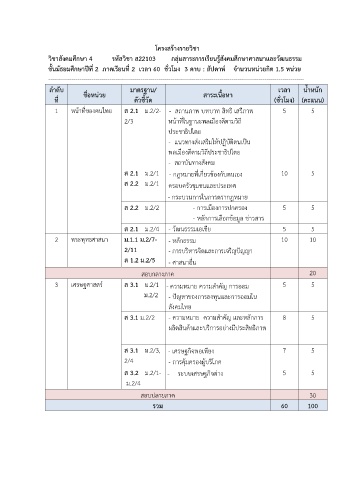 ล าดับ ชื่อหน่วย มาตรฐาน/ สาระเนื้อหา เวลา น้ าหนัก