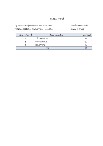 หน่วยการเรียนรู้ที่                  ชื่อหน่วยการเรียนร  ู้              เวลา(ชั่วโมง)