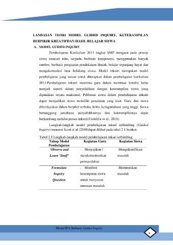 Tabel 2.1 Langkah-langkah model pembelajaran inkuri terbimbing