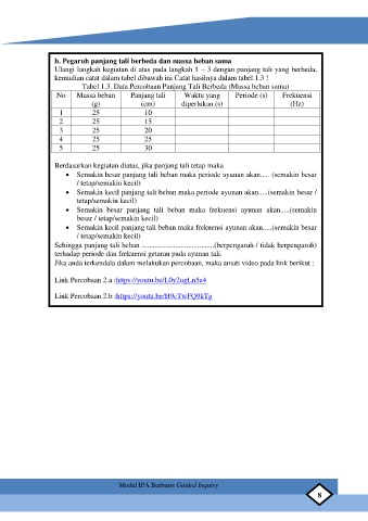 Ulangi langkah kegiatan di atas pada langkah 1 – 3 dengan panjang tali yang berbeda,