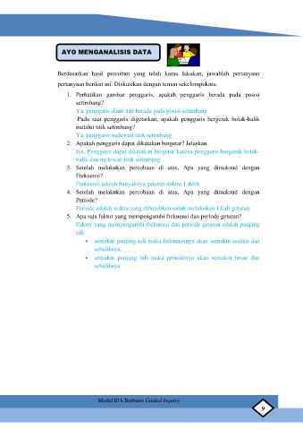 Berdasarkan hasil percoban yang telah kamu lakukan, jawablah pertanyaan