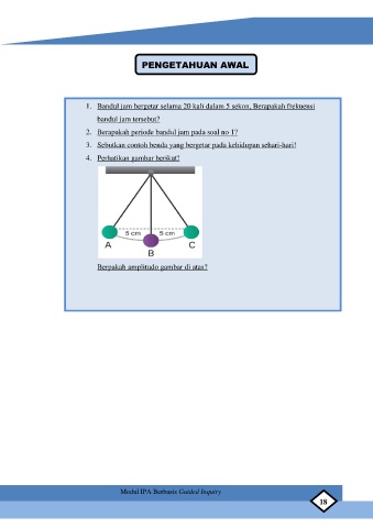 1. Bandul jam bergetar selama 20 kali dalam 5 sekon, Berapakah frekuensi