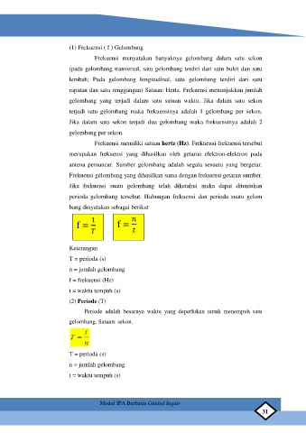 gelombang yang terjadi dalam satu satuan waktu. Jika dalam satu sekon
