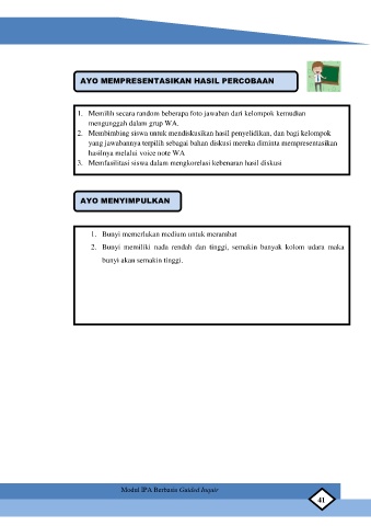 2. Membimbing siswa untuk mendiskusikan hasil penyelidikan, dan bagi kelompok