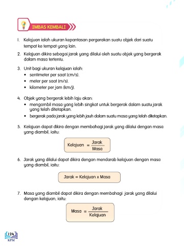 5.  Kelajuan dapat dikira dengan membahagi jarak yang dilalui dengan masa