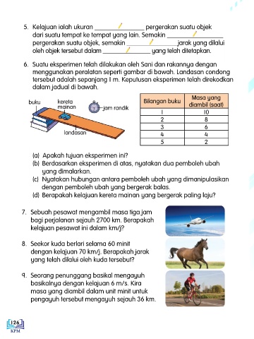 5. Kelajuan ialah ukuran _______________ pergerakan suatu objek
