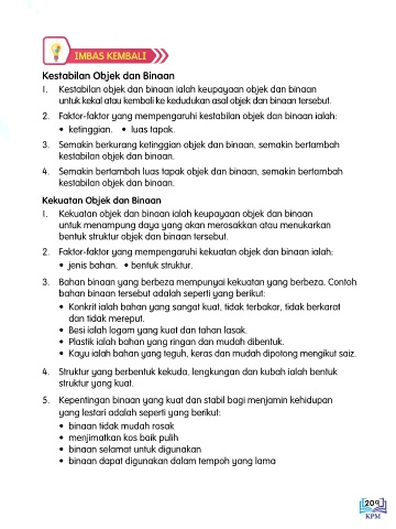 1. Kestabilan objek dan binaan ialah keupayaan objek dan binaan