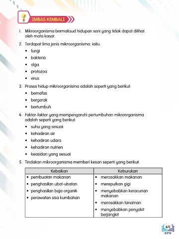 5. Tindakan mikroorganisma memberi kesan seperti yang berikut: