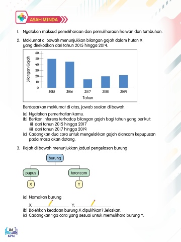 2. Maklumat di bawah menunjukkan bilangan gajah dalam hutan X