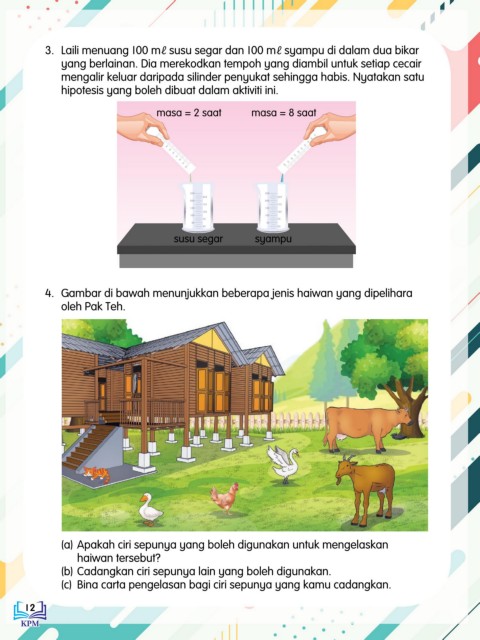 3. Laili menuang 100 mℓ susu segar dan 100 mℓ syampu di dalam dua bikar