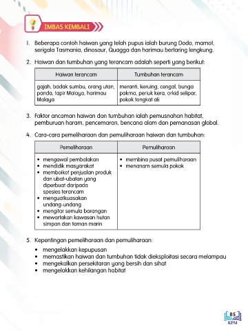 4. Cara-cara pemeliharaan dan pemuliharaan haiwan dan tumbuhan: