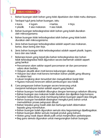 1. Bahan buangan ialah bahan yang tidak diperlukan dan tidak mahu disimpan.