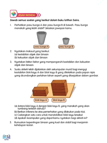 kestabilan blok kayu A dan blok kayu B yang diletakkan pada papan nipis