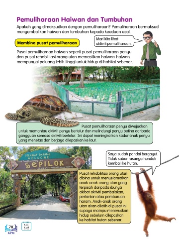 dan pusat rehabilitasi orang utan memastikan haiwan-haiwan