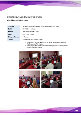 Program : Mesyuarat SKT dan Takwim PKG Zon Tengah di PKG Alma