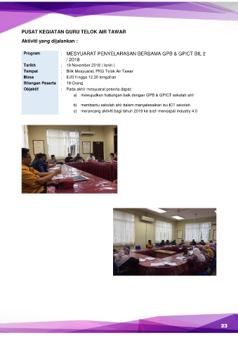 Program : MESYUARAT PENYELARASAN BERSAMA GPB & GPICT BIL 2