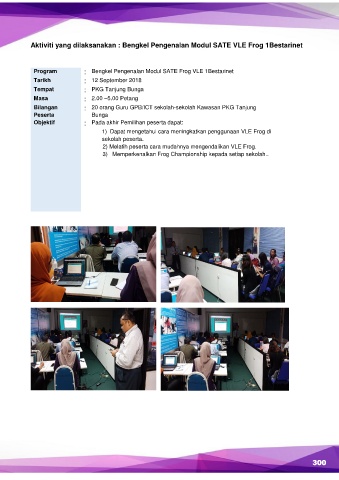 Aktiviti yang dilaksanakan : Bengkel Pengenalan Modul SATE VLE Frog 1Bestarinet