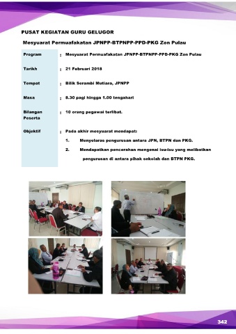 Program : Mesyuarat Permuafakatan JPNPP-BTPNPP-PPD-PKG Zon Pulau