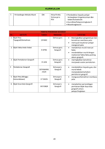 7. Pertandingan Melukis Mural Okt Ketua Panitia • Pendedahan kepada pelajar