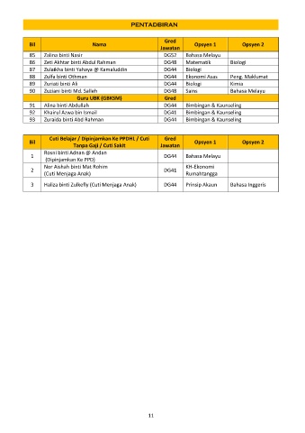 Cuti Belajar / Dipinjamkan Ke PPDHL / Cuti Gred