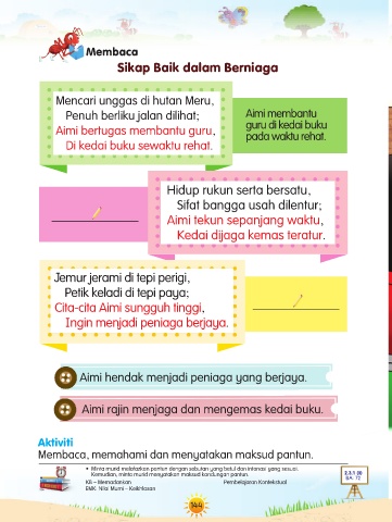 Aimi rajin menjaga dan mengemas kedai buku.