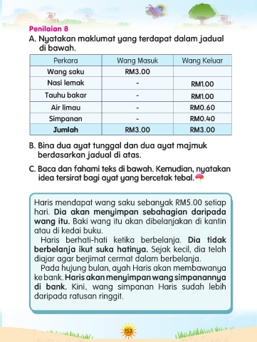 ke bank. Haris akan menyimpan wang simpanannya