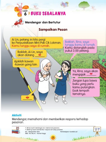• Bimbing murid memberikan respons terhadap pesanan. BA: 35