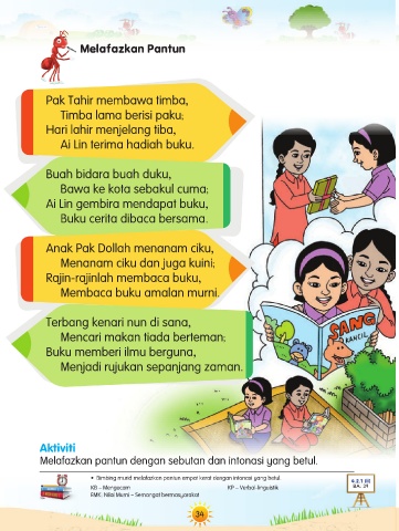 • Bimbing murid melafazkan pantun empat kerat dengan intonasi yang betul.