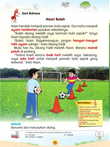 • Pastikan murid bercerita dan menuturkan dialog secara didik hibur. 4.1.1