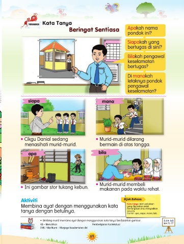 • Bimbing murid membina ayat dengan menggunakan kata tanya berdasarkan gambar. 5.1.4 (vi)