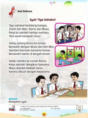 • Bimbing murid melagukan syair mengikut irama “Selendang Delima”. 4.2.3