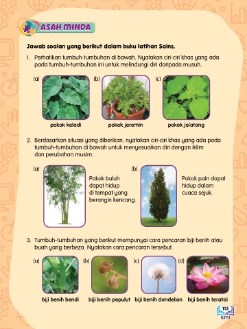 3. Tumbuh-tumbuhan yang berikut mempunyai cara pencaran biji benih atau