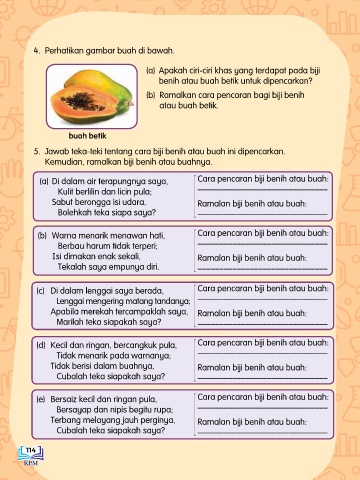5. Jawab teka-teki tentang cara biji benih atau buah ini dipencarkan.